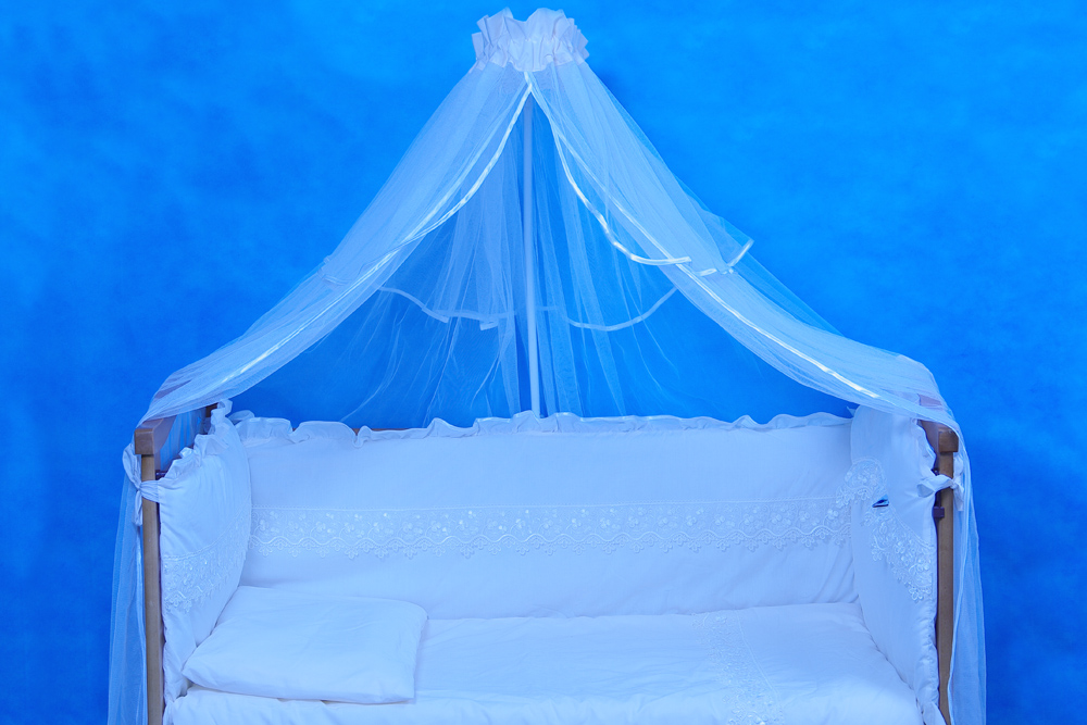 Пододеяльник 110х150, наволочка 40х60, простыня на резинке, одеяло 108х147, подушка 38х58, бортик на всю кроватку 360, балдахин(сетка или органза)