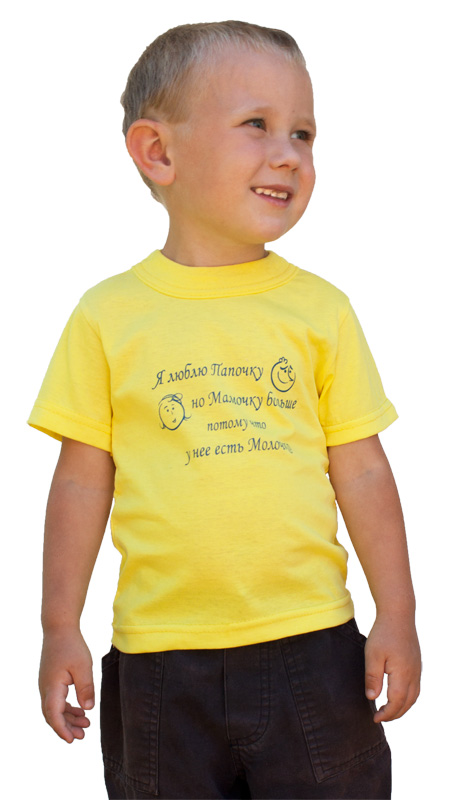 Прикольные детские футболки ярких и радостных цветов рассказывают об экологичном подходе в воспитании ребенка.