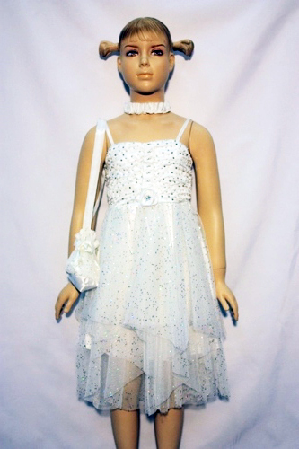 Состав: Платье на бретелях, верх и юбку украшают стразы, корсет на резинке, повязка, сумочка