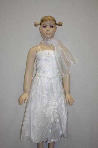 Состав: Платье на тонких бретелях, верх декорирован блестками и цветком с большой бусиной, объемная юбка с красивым цветком, корсет на резинке, шарфик