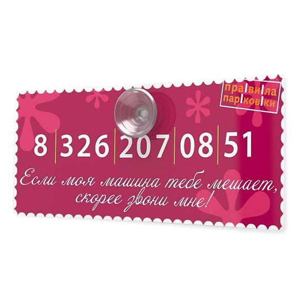 - плотная карточка с отверстием для присоски. На неё водитель наклеивает цифры номера своего телефона;