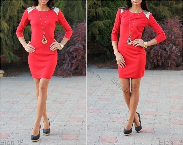 Трикотажное платье. Верх - приталенный. На плечах пришитые паетки - имитация пагонов. На талии шов.