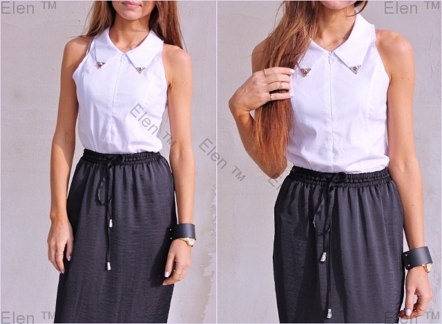 Хлопковая рубашка-топ. Ткань рубашка . Спереди молния до талии. На воротнике золотые уголки с шипом.