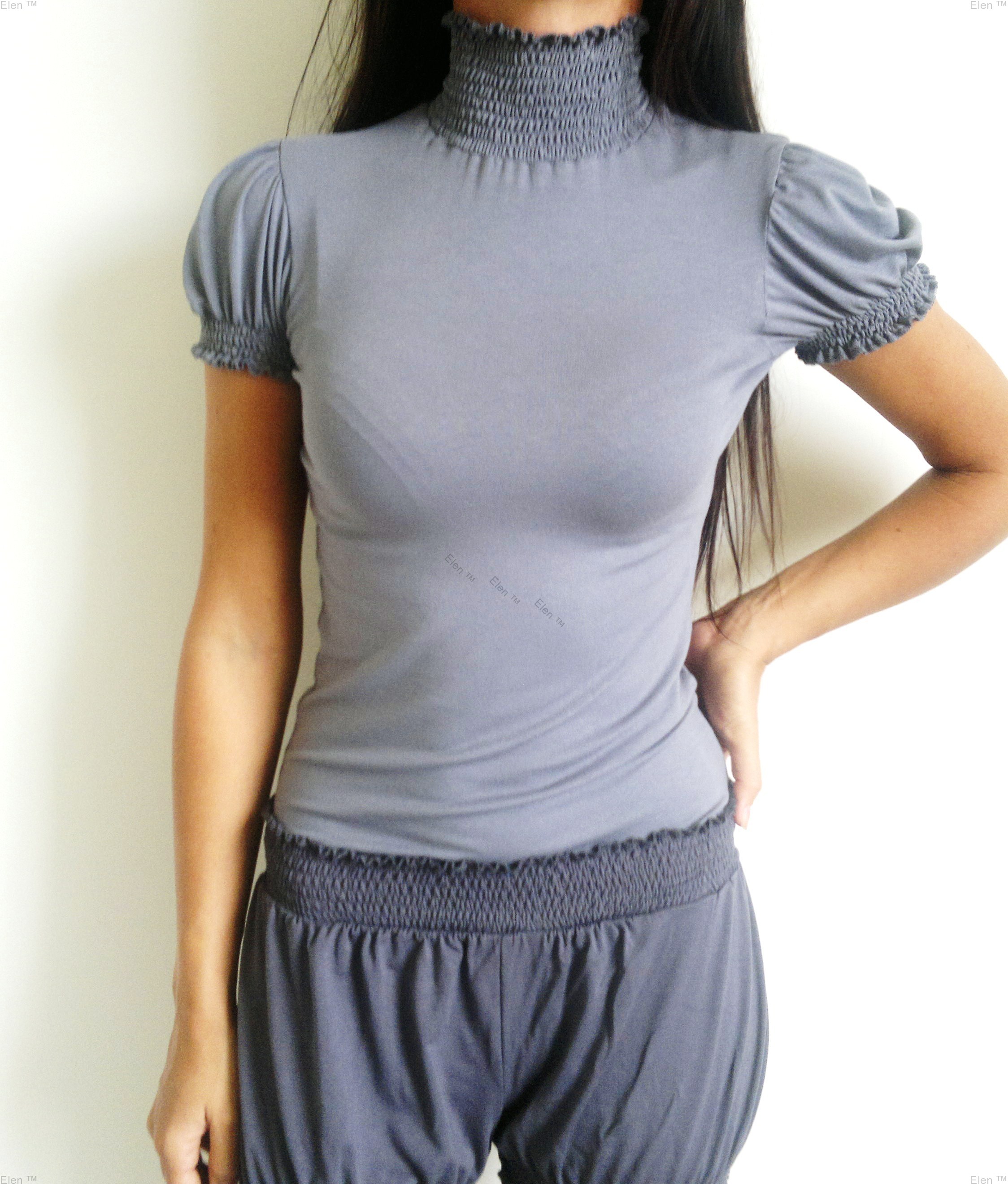 Модный гольф из трикотажа ( вискоза+ эластан). Высокая эластичность. Короткий рукав и горло на многорядной, эластичной сборке.