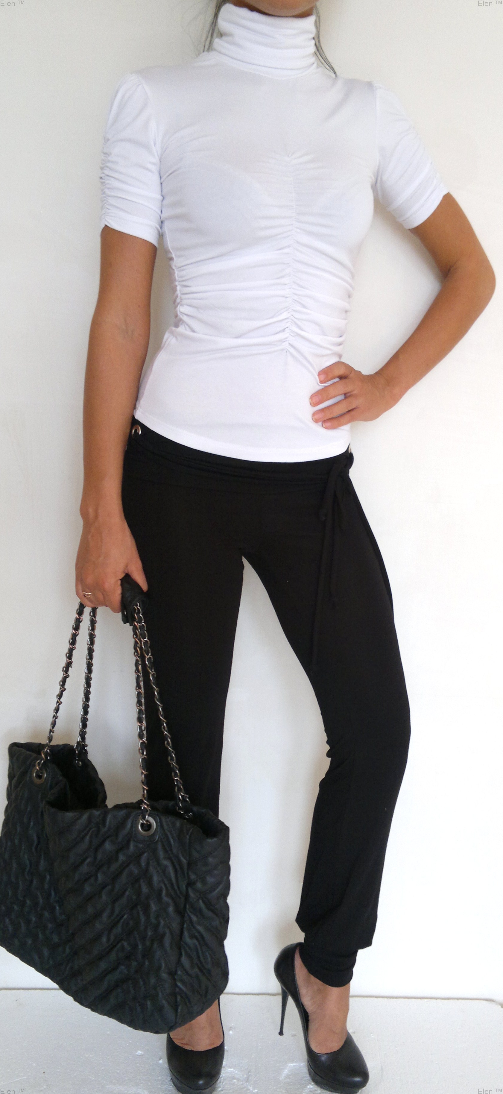 Модный, стильный гольф из трикотажа (вискоза+ эластан). Высокая эластичность. Спереди по центру сборка , короткий рукав , сборка на горловине.