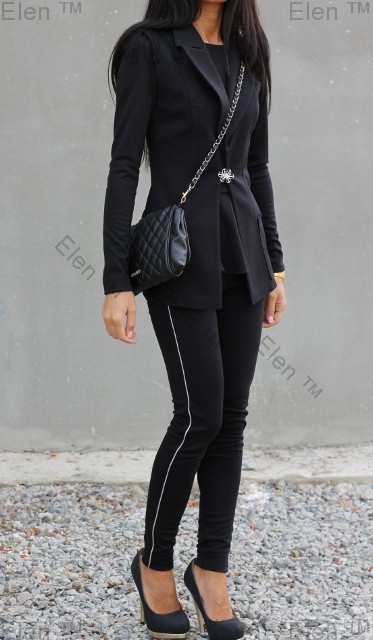 На фото: леггинсы черные, топ bdr, пиджак ofis